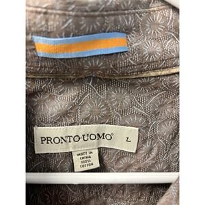 Pronto Uomo Shirt Mens L Brown Cotton Long Sleeve Embroidered Classic Button-Up