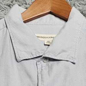 Pronto Uomo Shirt Mens XL Blue Linen Short Sleeve Button Up Pocket Summer Casual
