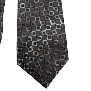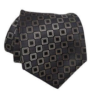 Pronto Uomo Silk Tie Checkered Geometric Pattern Black/Charcoal