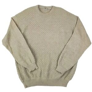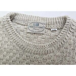 Pronto Uomo Sweater Men's 54/XL Beige Knit Linen/Cotton Made in Italy Vntg. 90s.