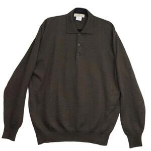 Pronto Uomo Sweater Mens XL Chocolate Brown Pure Virgin Wool Collared 1/4 Button