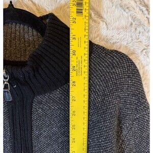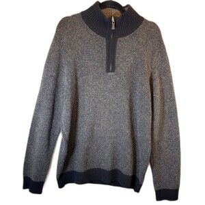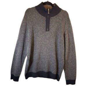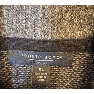 Pronto Uomo Sweater Size XL Black Gray 100% Wool Pullover 1/4 Zip Mock Neck