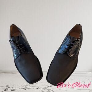 Pronto Uomo Tuxedo Black Patent Leather Square Toe Lace Up Shoes Size 9M