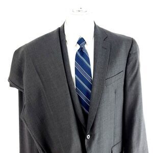 Pronto Uomo Wool 2 Button 2 Piece Suit 44R Portly Gray 40/28 Flat Front High Rise