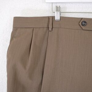 Pronto Uomo Wool Brown 47/27 Dress Pants High Rise Pleated Cuffed Lined Partiall