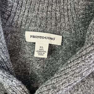 Pronto Uomo Wool Sweater XL Gray Chawl Collar Grandpa Soft Preppy Heritage