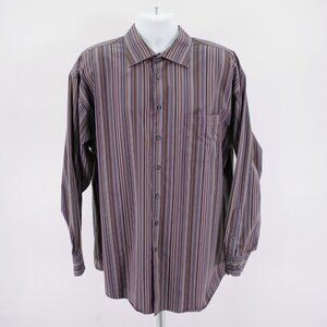 Pronto Uomo XXL Non Iron Brown Blue Striped Pocket Front Collared Dress Shirt