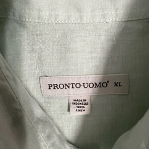 Pronto Uomo button down top, size XL. Mint green color in excellent pre-loved condition. 100% linen