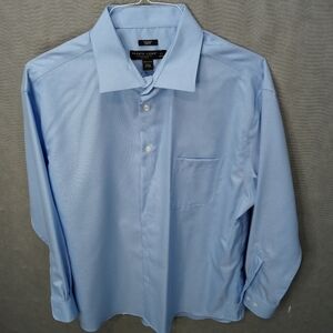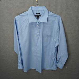 Pronto Uomo men's long sleeve dress shirt button front 100% Cotton. Blue. Sz XL 17.5" neck. Pit-p 24". Length 34". 80pm