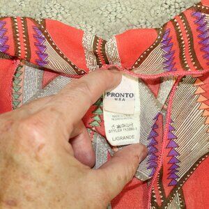 Pronto Women's Size Large Vibrant Orange Patterned Open Cardigan