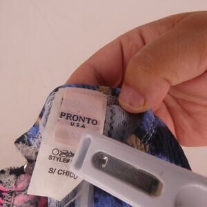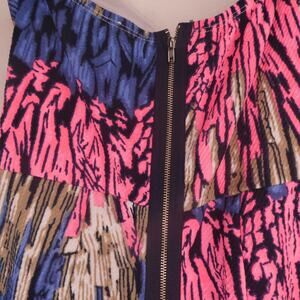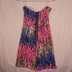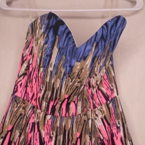Pronto Women's Small Dress Sleeveless Zipper Back Blue, pink, tan, and white Length 26” Pit to Pit 13”