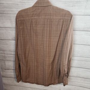 The shirt is suitable for many different settings, from casual outings to more formal events. It features a classic plaid pattern that is both timeless and versatile. The small size is perfect for men who prefer a more tailored fit. This shirt is a great addition to any wardrobe and can be paired with jeans, khakis, or dress pants.