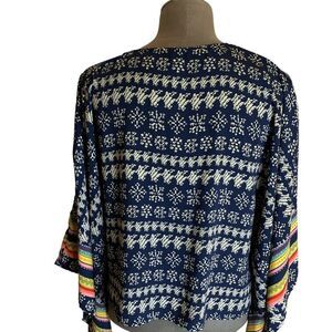 Pronto USA Womens one size Small Large Navy Multi color Boho Lightweight poncho