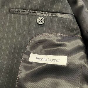 Pronto Uomo Black 100% Wool Pinstriped Two Button Blazer Men’s 41 Regular