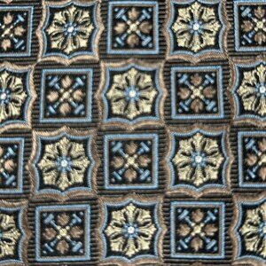 Beautiful geometric shield pattern in gold, turquoise, silver