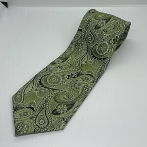 Pronto-Uomo Green Silver Paisley Pure Silk Career Office Necktie NWOT