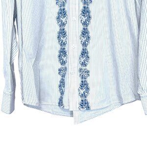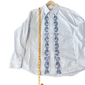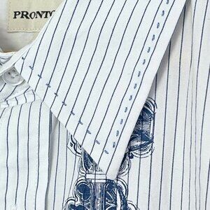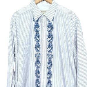 Pronto-Uomo Hand Stitched Shirt Mens Size XL Blue Stripe Button Down Cotton