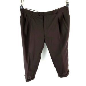 Pronto Uomo Wool Dress Pants Slacks 44/23 Short Leg Chocolate Brown Pleated High Rise Cuffed Tagged 48 Has Been Tailored From Original Size