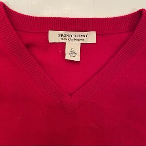Pronto Uomo 100% Cashmere V Neck Sweater Christmas Holiday Red XL