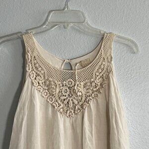 Prontomoda Giusy Sleeveless Crochet Neck and Hem Silk Blouse Fully Lined Cream Size Small