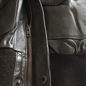 Inside is fully lined with a pocket. Exterior is leather with both snap pockets and other pockets.
