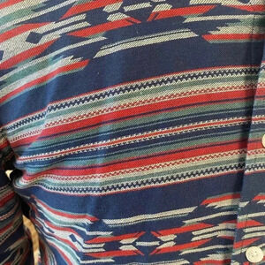 Proper Cloth Mens Japanese Navy Striped Aztec Shirt Size Medium Button Down. This shirt is pre-owned. Excellent condition. No flaws. Feels close to new. This was a custom made shirt. There is no size tag.