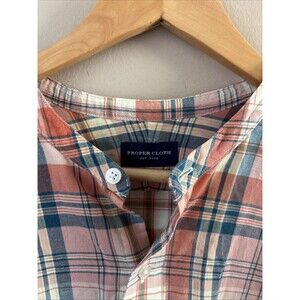 Proper Cloth Mens Shirt XXL Orange Blue Plaid Button Down Long Sleeve Casual