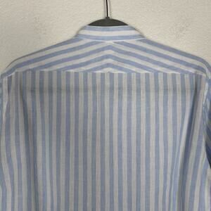 Gently used striped linen shirt with a band collar. Please check the measurements so a return won’t be necessary. MWF shipping. Your satisfaction is important to me!