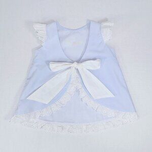 Proper Peony Blue Embroidered Open Swing Back Matching Ruffle Outfit Set 2T