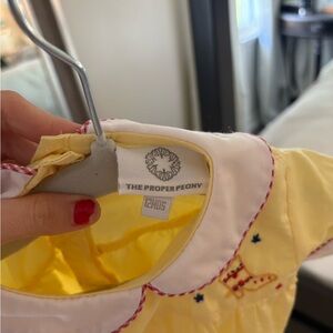 Worn maybe 3x! Runs on the smaller side. Adorable yellow baby romper with cute embroidery details. Features a white collar and short sleeves.