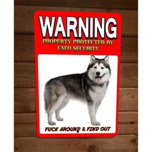 Property Protected FAFO Security Alaskan Malamute Dog 8x12 Wall Animal Sign