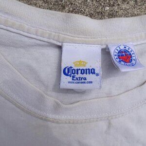 Slight staining on piece and slight hole in front of tee as shown in pictures. Swag corona beer drinking graphic beach tee