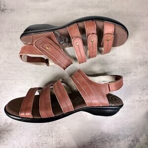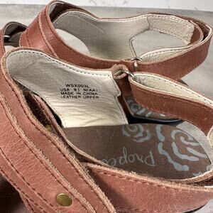 Propet Aurora Wedge Sandal US Women's 9.5 Leather Strappy Slingback Loop Brown