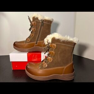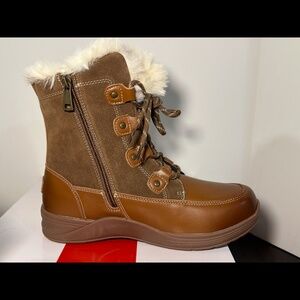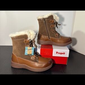 Propet Dulcie Leather/Suede Faux Fur Water Repellent Winter Boots Brown 8D Wide