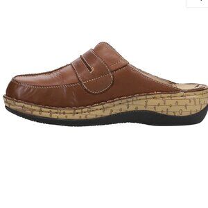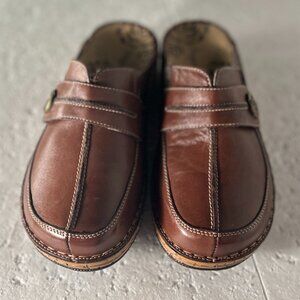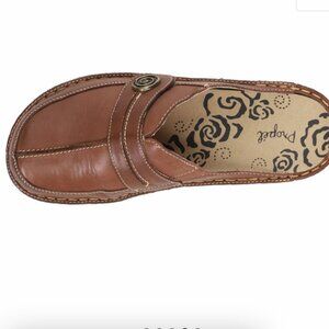 Propet SZ 9.5 Jana Brown Leather Non Slip Comfort Clog Adjustable Work Preppy