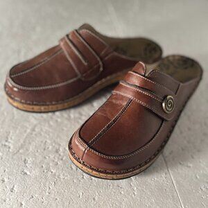 Brown leather clog