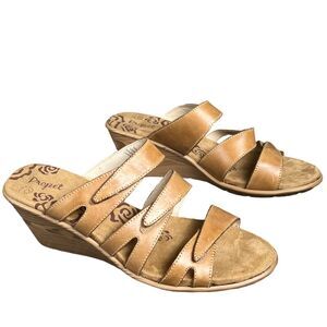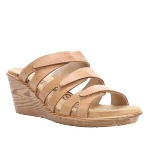 Propet Wedge Sandals Womens Size 11 B Tan Leather Lexie Slip On Microfiber Lined