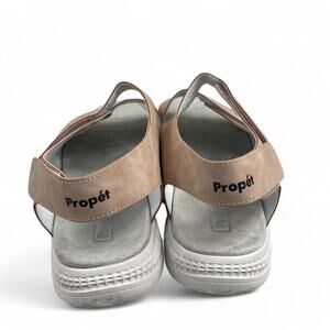 Elevate your everyday comfort with the Propet TravelActiv™ Scottsdale women's sandal. Designed with practicality in mind, this size 12 extra wide (EEEE) sandal boasts a sleek beige synthetic upper complemented by a durable fabric insole. The strappy style ensures a secure fit, while the adjustable hook and loop closure offers versatility for all-day wear. Enjoy the versatility of a low heel sandal that doesn't compromise on style or function. The solid pattern and flat heel make these sandals perfect for fall, spring, and summer. Whether you're out for a casual stroll or running errands, the slip-resistant features and lightweight design ensure you stay comfortable and stylish.