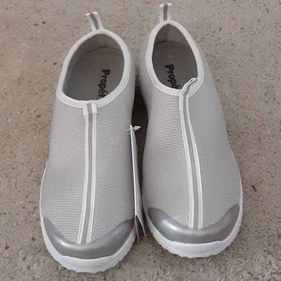 Light gray w/white trim light weight slip on shoe. New w/tag. 9.5 Wide
