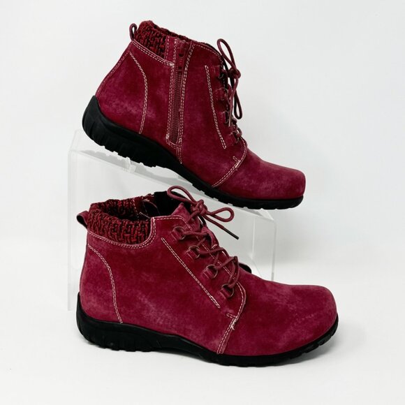 Propet Womens Burgundy Suede Leather Side Zip Snow Booties Size 6