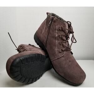 Propet Women's Delaney Suede Ankle Boot Purple Knit Lace Up Side Zip Size 10