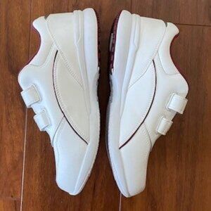 Smooth leather uppers with perforations and overlay accents. Fully lined in soft fabric, cushioned collar and tongue, with Propet's Shock Absorber removable cushioned insole system. Wide velcro straps -fully adjustable. Shoes are new with tags, without box. There is some minor scuffing from try on (see last photo). Please note that these are sized: 8 1/2 XX 4E
