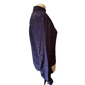This is a Vintage Prophecy Floral Silky Purple Librarian Blouse.