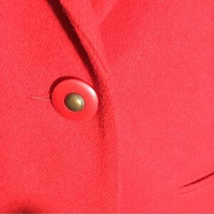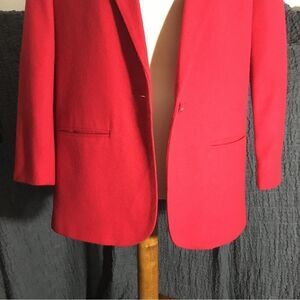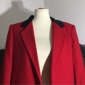 Holiday Red vintage blazer. Black collar accent. Inside shoulder pads. Button front closure. Two front pockets. 100% Wool. Pre-owned in great condition.