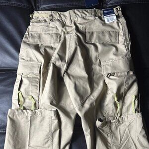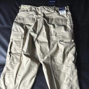 Pre-owned pair of Propper Men’s BDU Cargo Pants in khaki, size M/L Regular. Designed for tactical, military, or outdoor use, these pants feature a button fly, cargo pockets, and durable construction for all-day wear.