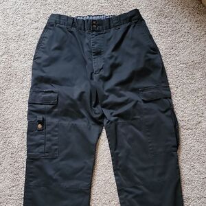 This is the best fitting and most comfortable pants that I have found throughout my career. They are the original label - red, white, blue - now discontinued. They have all the needed features and functions. Elastic waist that stretches to fit comfortably. These fit true to size. They are black.