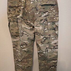 6 pocket, 3 button fly, 65% polyester 35% cotton, heavy duty multicam combat pants. Like new, never worn. Size XL/R (see chart).