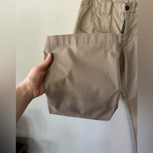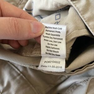 In good condition- no rips or tears. Few small loose strings that don’t affect quality of pants. Small line smudge on side cargo pocket- might come out in the washer but can’t 100% guarantee. Still have a lot of life left!