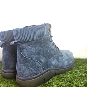 Soft suede upper with padded corduroy collar and convenient side zip.
