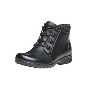 Step out in style with the Propét Women's Delaney Ankle Bootie in classic black. Crafted for both fashion and comfort, these booties feature a wide fit for added roominess and a comfortable stride. The sleek black design adds versatility to your wardrobe, perfect for pairing with jeans, dresses, or leggings. With a durable construction and supportive cushioning, these booties are ideal for all-day wear. Elevate your look with the perfect blend of style and comfort in the Propét Delaney Ankle Bootie.